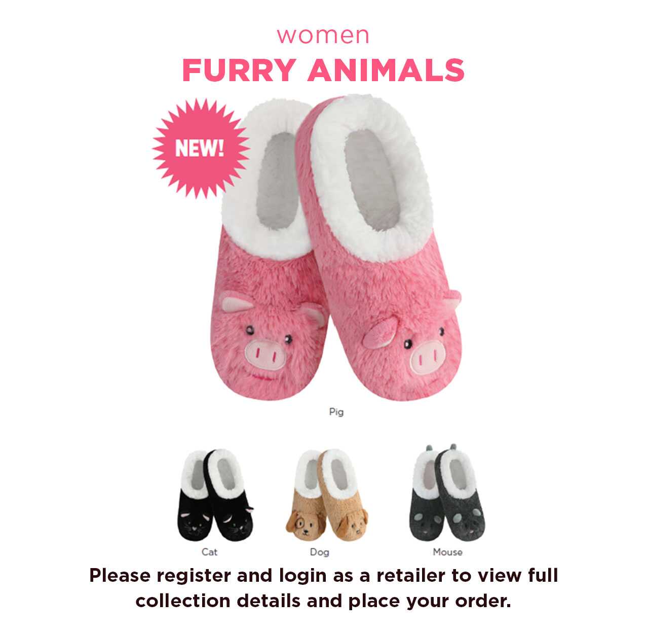Womens Furry Animals snoozies! Collection 4 Asst Styles Size Small (4 Prs)