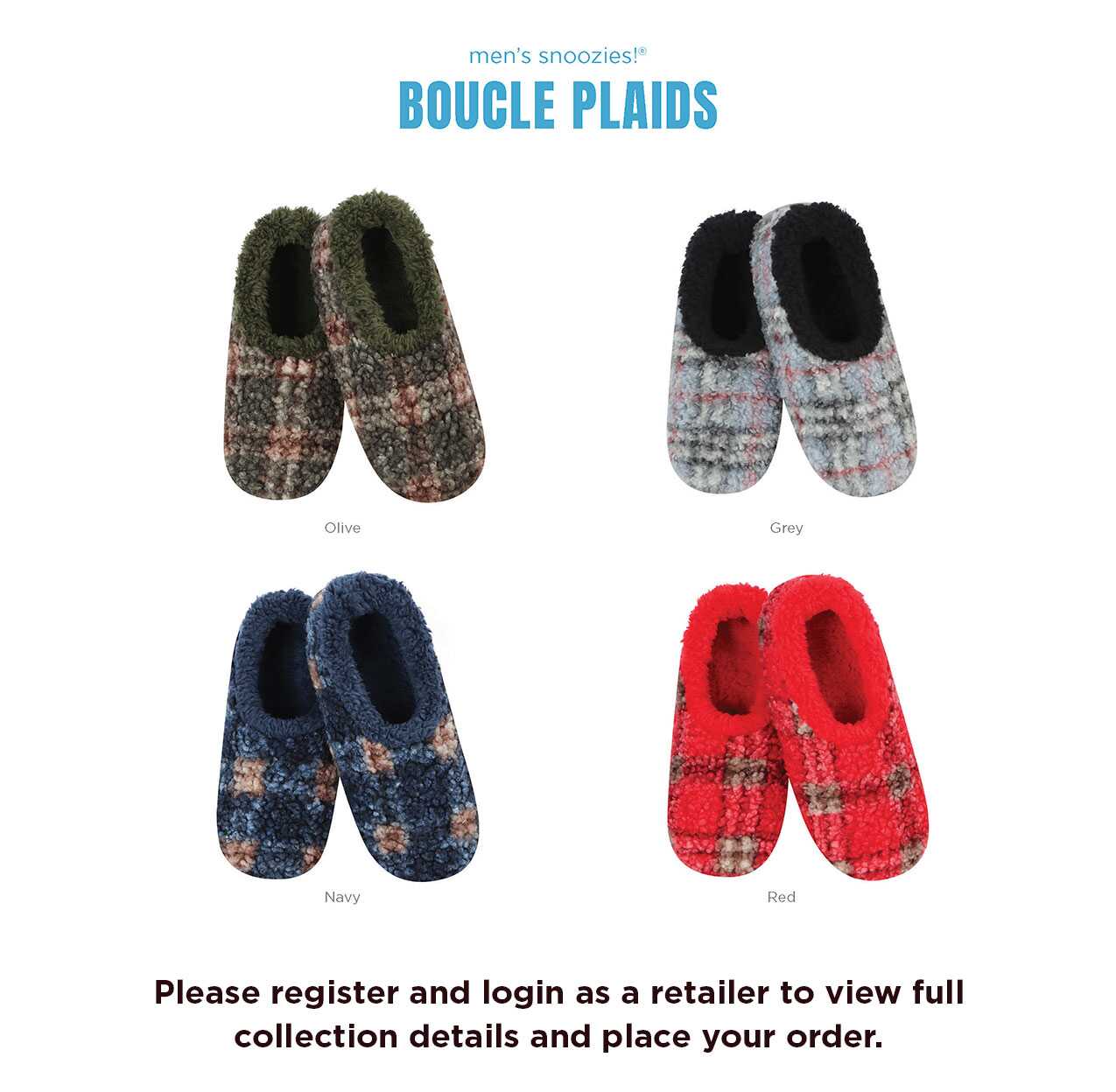 Mens Boucle Plaids snoozies! Collection 4 Asst Colors (S-XL) 24 Prs